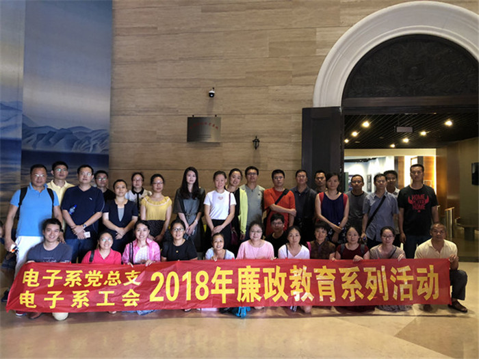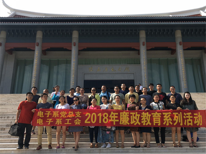 为全面深入学习贯彻十九大精神,持续推进党风廉政建设和反腐败斗争,不断落实师德师风建设,树立全体党员、教职工敬廉崇洁、诚实守信、爱岗敬业的良好形象,电子系党总支、电子系工会将主题党日活动和工会活动相结合,于2018年7月4日赴全国廉政教育基地——集美陈嘉庚纪念馆参观学习,开展2018年廉政教育实践活动。